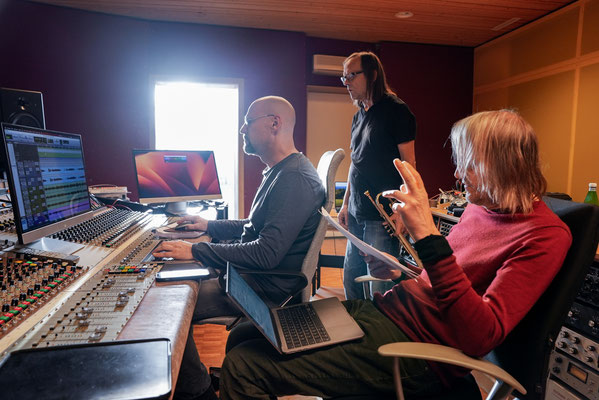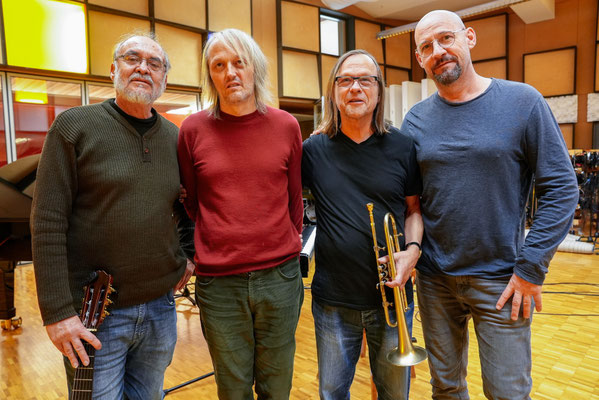 Das Jazz Trio Schärli - Moreira - Feigenwinter nimmt bei uns ihr neues Album auf. Peter Schärli - Trompete, Juarez Moreira - Gitarre, Hans Feigenwinter - Piano und Andy Neresheimer am Mischpult